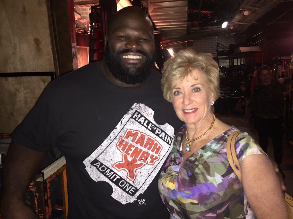 A ex-presidente da WWE e esposa de Vince, Linda McMahon esteve visitando os backstages da RAW na última segunda-feira (29) em Washington. Linda já não faz mais parte da diretoria da WWE mas sempre que pode prestigia os shows da companhia.