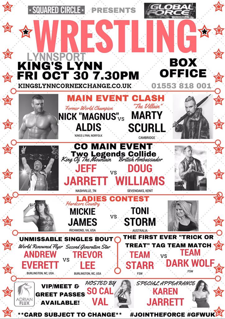 A Global Force Wrestling anunciou as lutas do segundo show que a empresa realizará no Reino Unido no dia 30 de outubro. Jeff Jarrett lutará pela primeira vez pela sua companhia e enfrentará o ex-TNA X-Division Champion Doug Williams, no main event do show Marty Scurll enfrentará Nick 'Magnus' Aldis.